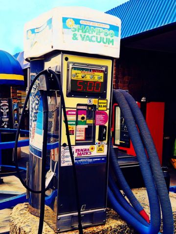 Interior clean your vehicle with our shampoo vacuum. Shampoo comes out from a bristle brush head which is excellent for scrubbing stubborn spills and stains. Once complete click the selector switch to vacuum to clean up and help dry up the upholstery and carpeting. Vacuum runs for 5 minutes, add more coins for more time or if using the credit card acceptor press green lit button for extra time, each press adds $1