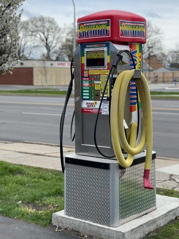 High suction vacuum, available at most bays. Accepts Quarters, Tokens and Credit Cards.